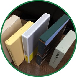 Vカット製品、各種表紙貼(ハードカバー、薄表紙、加除表紙、規格外表紙、他)、各種ブックケース(天地糊止ケース、針金止ケース、貼ケース、他)、バインダー、アルバム、証書入れ等の制作、各種箔押し、合本・合紙